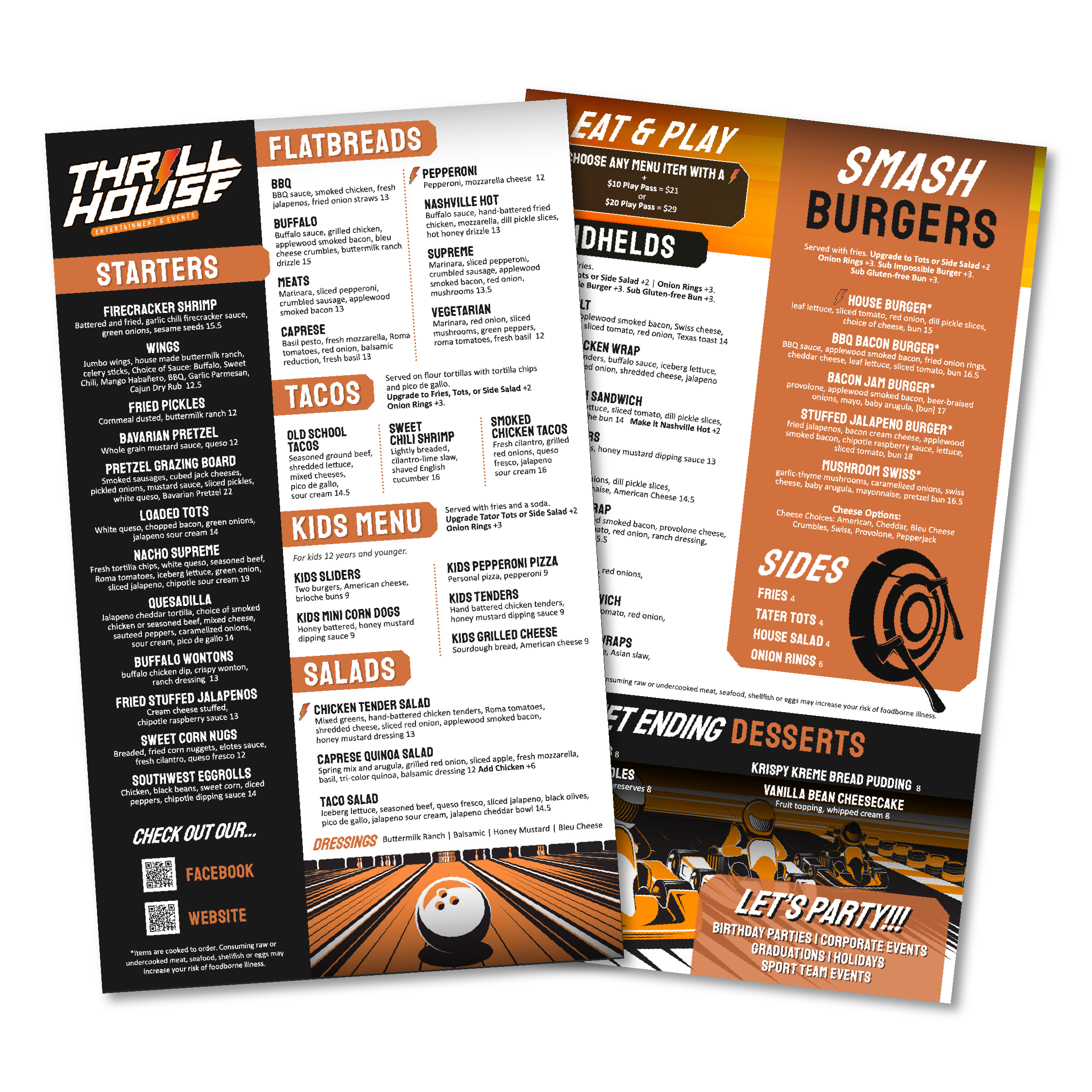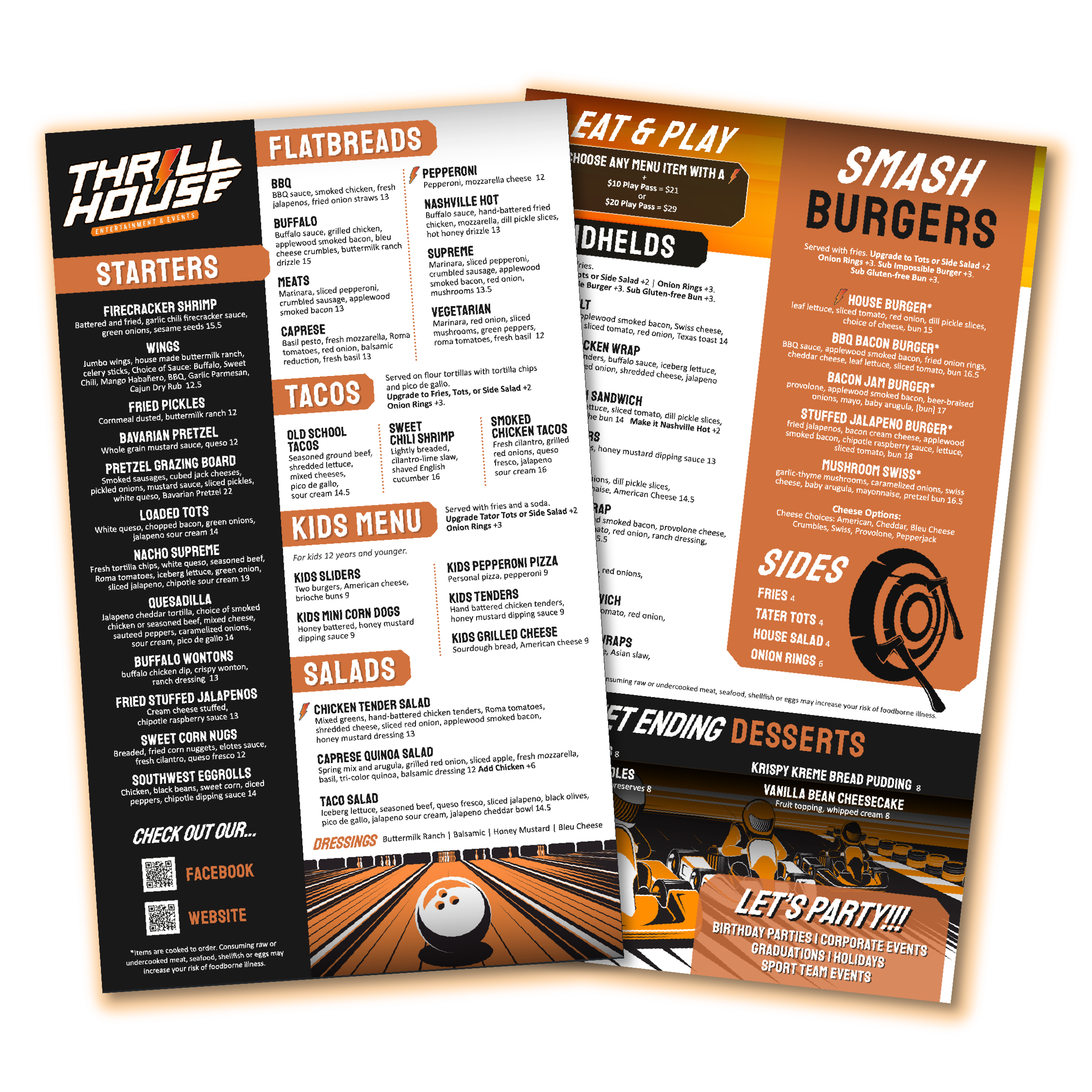 OUR MENUS Take a break, grab a bite, and raise a glass. Fan-favorite eats, a full bar, and late-night options mean the fun never slows down. Click each menu to view
